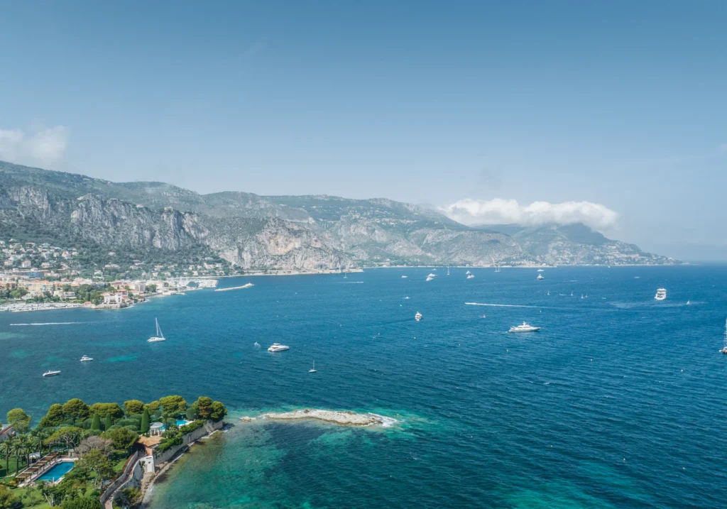 Perched on a gentle hill in the prestigious Saint-Jean-Cap-Ferrat, this brand-new luxury villa rental is ideally located just a 6-minute walk from a beautiful sandy beach and a 10-minute walk from the charming town center. A semi-private, secure path directly links the villa to the famous Maurice Rouvier Promenade, offering a picturesque seaside stroll. The standout features of this property include lush, beautifully landscaped gardens, a heated pool, a rooftop terrace, and panoramic vistas of the Mediterranean Sea.