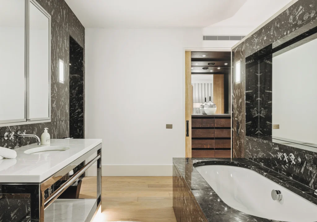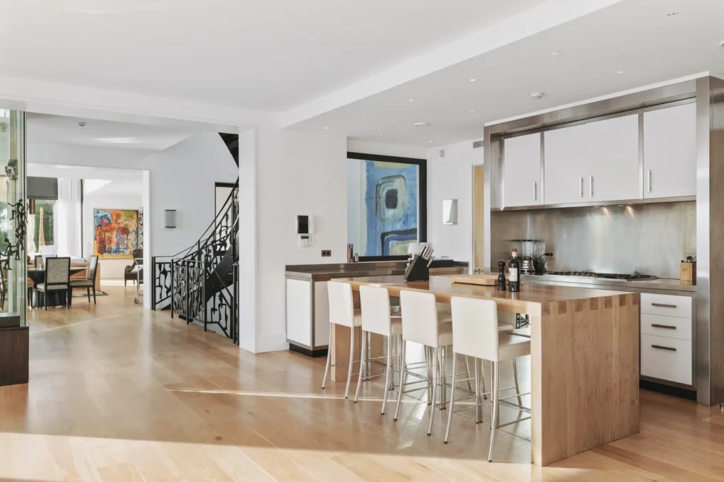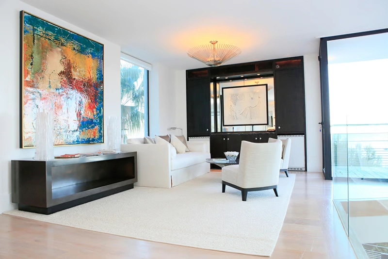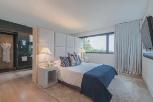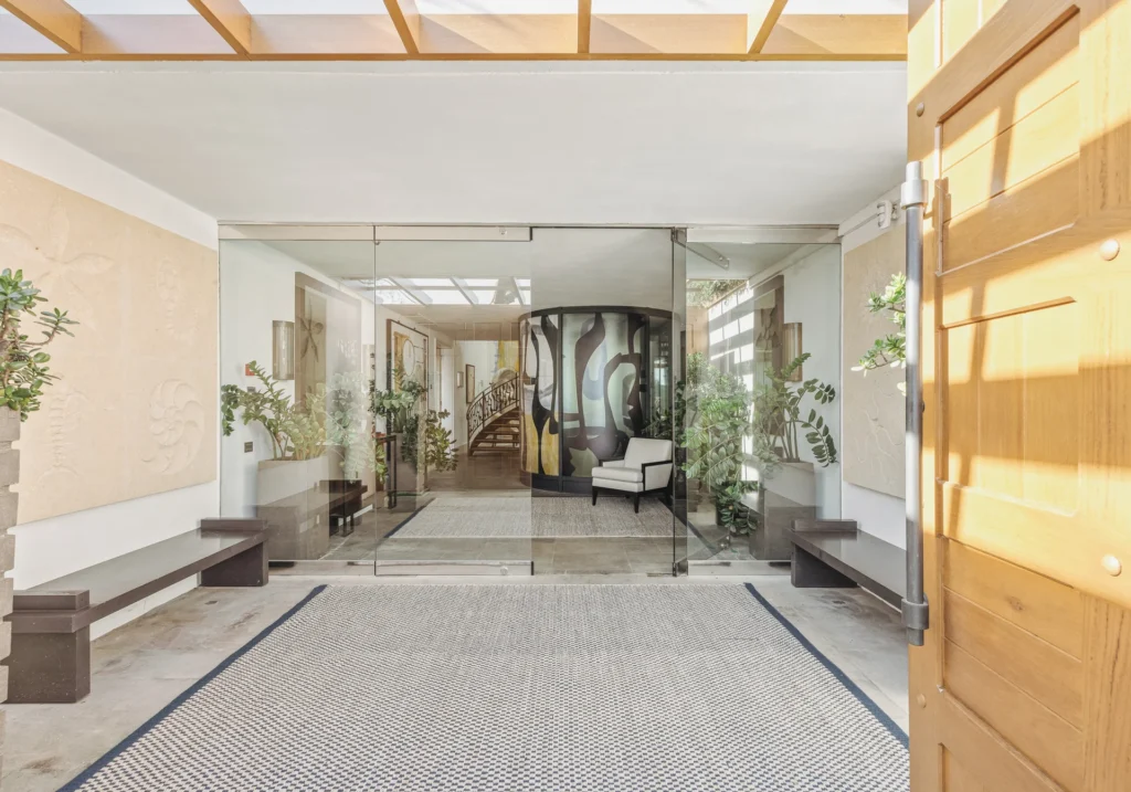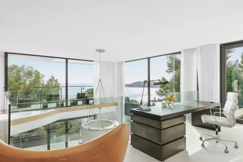 The interior spaces are bright with natural light, spacious and decorated to the highest possible standard. The cool white walls, modern sofas, stunning reception, beds, and dining room are nothing short of impressive. In addition, the glass elevator is a showstopper in itself and offers guests a way to enjoy the view as they travel from one floor to the next.