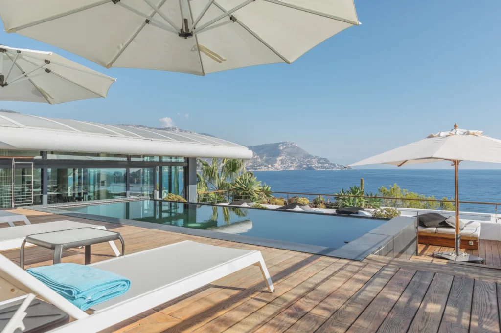 This stunning modern villa is located in the beautiful seaside town of St. Jean Cap Ferrat, situated between Nice and Monaco. This luxury holiday villa is one of the most exceptional properties available for rent on the French Riviera, offering luxurious amenities and features.
