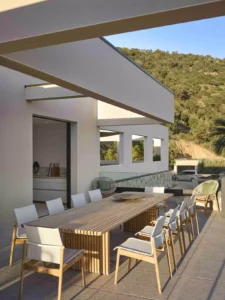 Perched in Grimaud, Villa Olympéa offers a retreat where contemporary elegance meets the serene beauty of the Côte d’Azur.