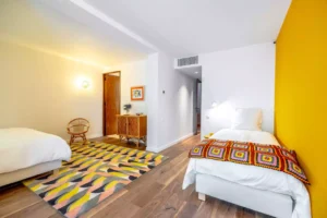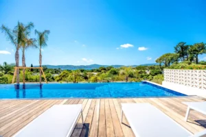 Wake up under the azure sky, where the morning begins with a refreshing dip in the pool, facing the horizon. Spend the afternoon relaxing with a game of pétanque in the cool shade of the trees, or indulge in an al fresco meal, gently swayed by the Mediterranean breeze. The outdoor space, infused with Provençal charm, becomes a true sanctuary where time seems to stand still, perfect for enjoying life’s simple pleasures with friends or family.