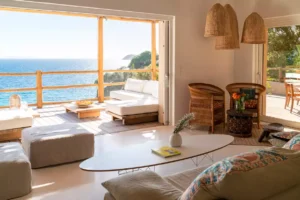 Welcome to Paradise! Part bohemian, part Saint Tropez chic, Villa La Finca transports us to the legendary era of the sixties French Riviera. Start your mornings with a family breakfast at the round wooden table on the terrace. The aroma of coffee mingles with the marine breeze and in front of you, the sea stretches endlessly and melts into the clear blue sky. Then pick your favourite spot under the sun: will it be a deckchair by the pool or in the shade of a parasol overlooking the waves?