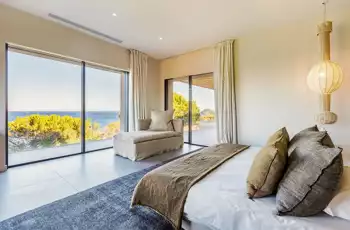 In Ramatuelle, Villa Bonporteau captivates with its prime location, just five minutes from the Escalet beach. It boasts an unbeatable panoramic view of the sea, best admired from the spacious terrace, a true vantage point over the horizon.