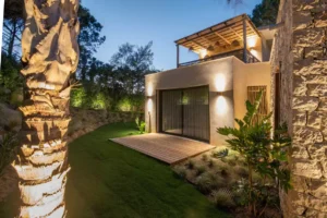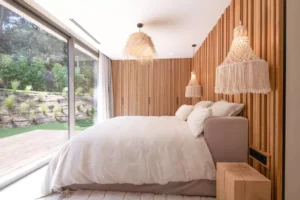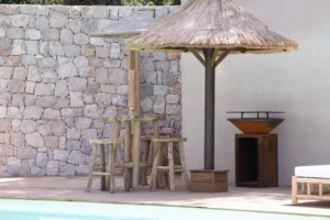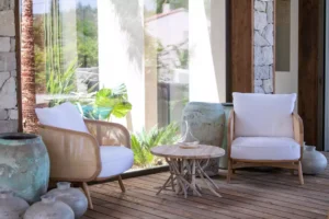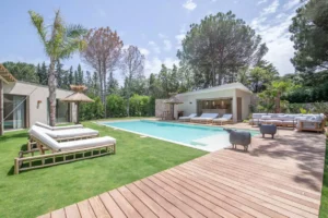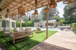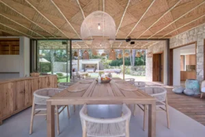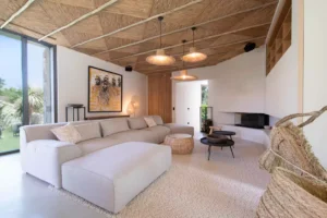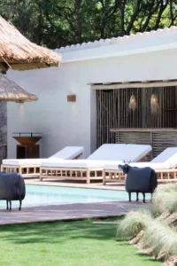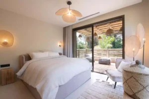 Nestled in the charming town of Ramatuelle, along the sun-drenched French Riviera, you’ll find the exquisite holiday sanctuary, Villa des Marres. Cocooned by a lush, Mediterranean garden that paints a vibrant tableau of colours, the villa allows nature to take centre stage, using natural wood and rattan with a muted colour palette.