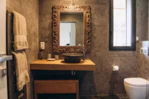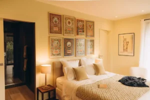 Take a stroll through the market stalls of Ramatuelle or organize a game of petanque in the garden of the villa. Then meet on the terrace of Chez Camille, perched above the Mediterranean, to share a bouillabaisse and a bottle of rosé de Provence. After a day of sunbathing on the warm sand of Escalet Beach, return to the cozy atmosphere of the bedroom, or relax in the Balinese-style stone bath.