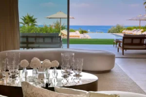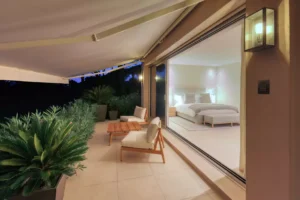 In Ramatuelle, Villa Pampero overlooks the Bay of Pampelonne, offering a breathtaking panoramic sea view. Between the garden filled with southern scents and the sun-drenched terraces, every space invites serenity and escape.