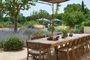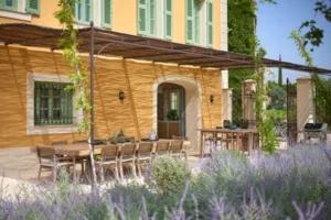 Nestled just outside the picturesque town of Ramatuelle, Bastide Giallo is a true jewel of the French Riviera. Its architecture harmoniously combines Southern authenticity and modern design. Inside, the decor honours comfort and elegance, using solid wood furniture, neutral tones and refined fabrics to create a warm and welcoming atmosphere.