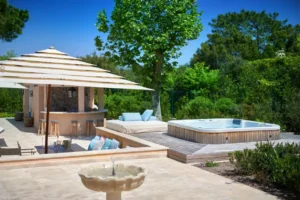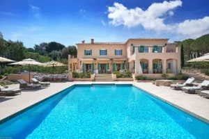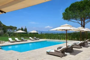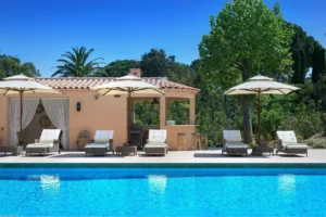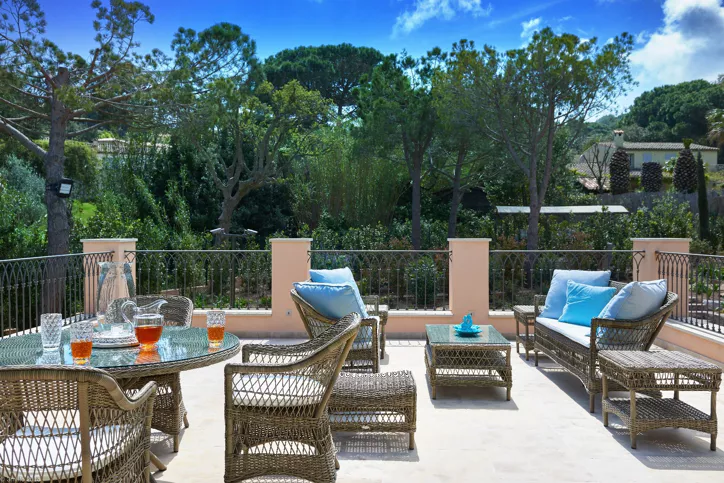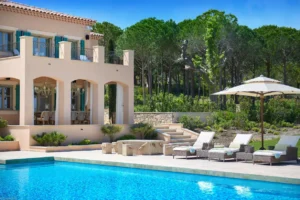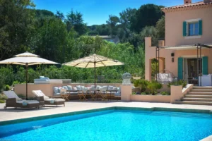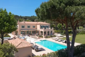 Charming villa with traditional style nestled on the Saint-Tropez peninsula, around the Canebiers. Its extensive outdoor space features a pool, a jacuzzi, and a tennis court. The garden and various resting places in the sun or shade create an idyllic setting, offering an oasis of relaxation in the heart of the French Riviera