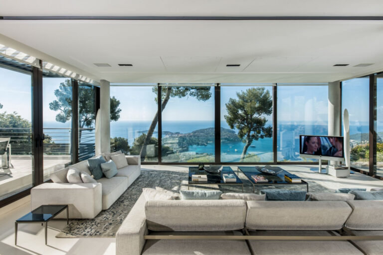 Looking down over the bay from its secluded hillside setting, this stunning Côte d’Azur villa lies in the exclusive Domaine du Castellet area, just moments from the centre of Villefranche and Beaulieu. The extensive terraces and gardens offer breathtaking views over the Bay of Villefranche, Saint Jean Cap Ferrat and beyond. Spaces are light-filled and extravagant, designed for calm contemplation or, equally, for entertaining.