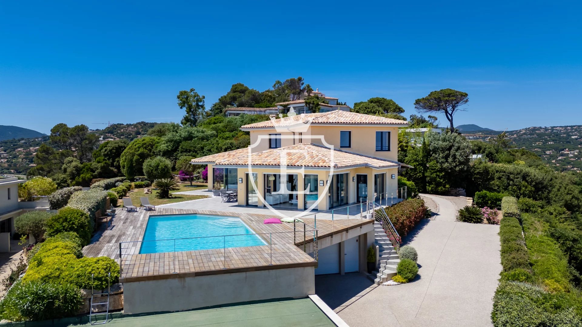 Stunning bioclimatic villa in Sainte-Maxime offers breathtaking 300-degree sea views, a pool, and luxurious amenities. Just 10 minutes from the beach, it features spacious living areas, high-end finishes, eco-friendly systems, and top-tier security.