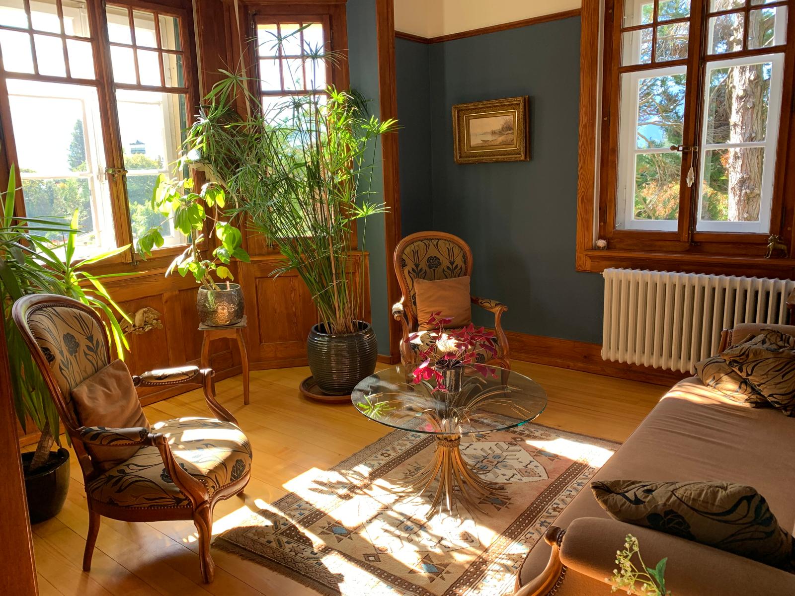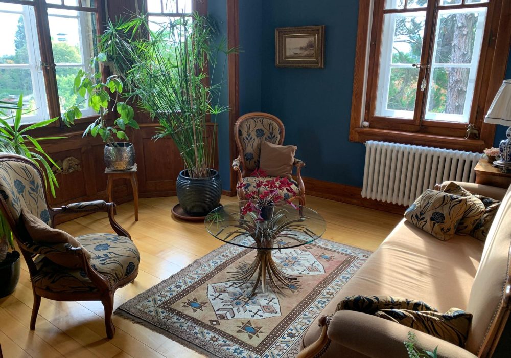 Beautifully furnished sitting rooms with vintage décor, warm lighting, and sophisticated charm.
