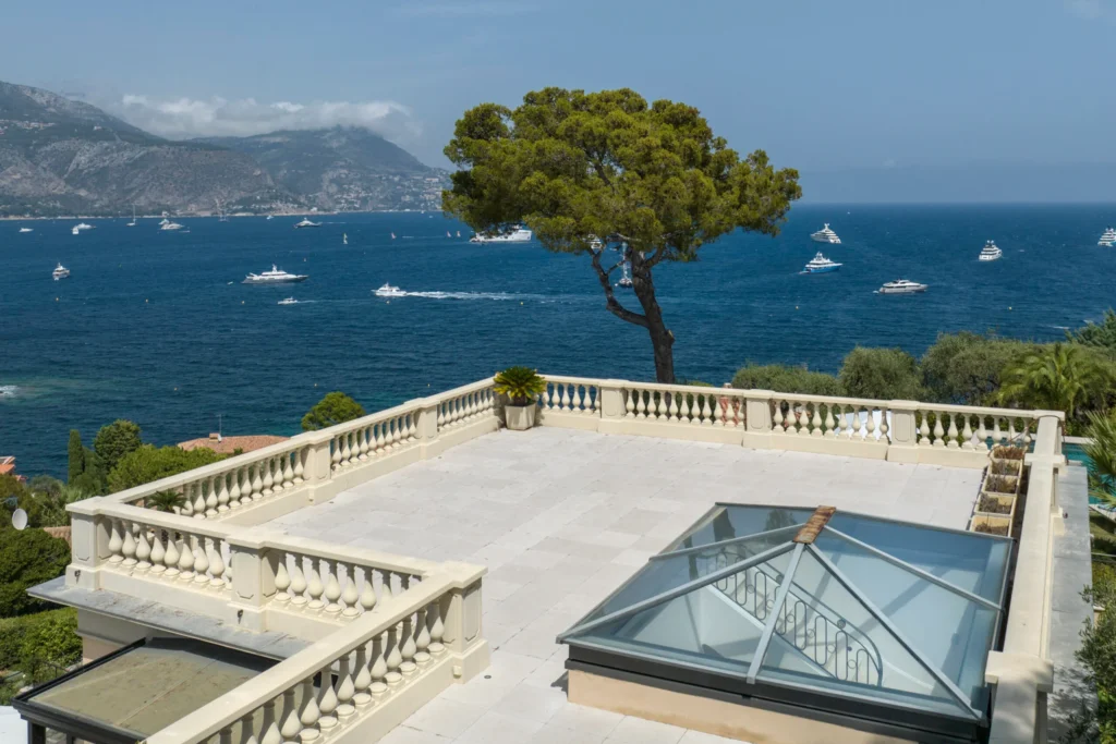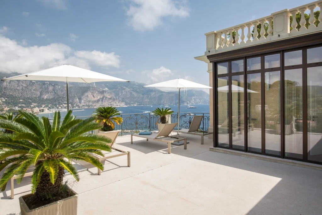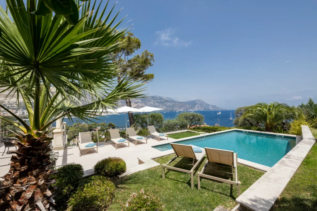 Outside, a year-round heated pool, surrounded by a lavish terrace, provides relaxation, while an al fresco dining area offers comfort. Just 300m from St-Jean beach, and a short walk to Beaulieu-sur-Mer village, the villa is also connected by a semi-private path to the Maurice Rouvier seafront promenade.